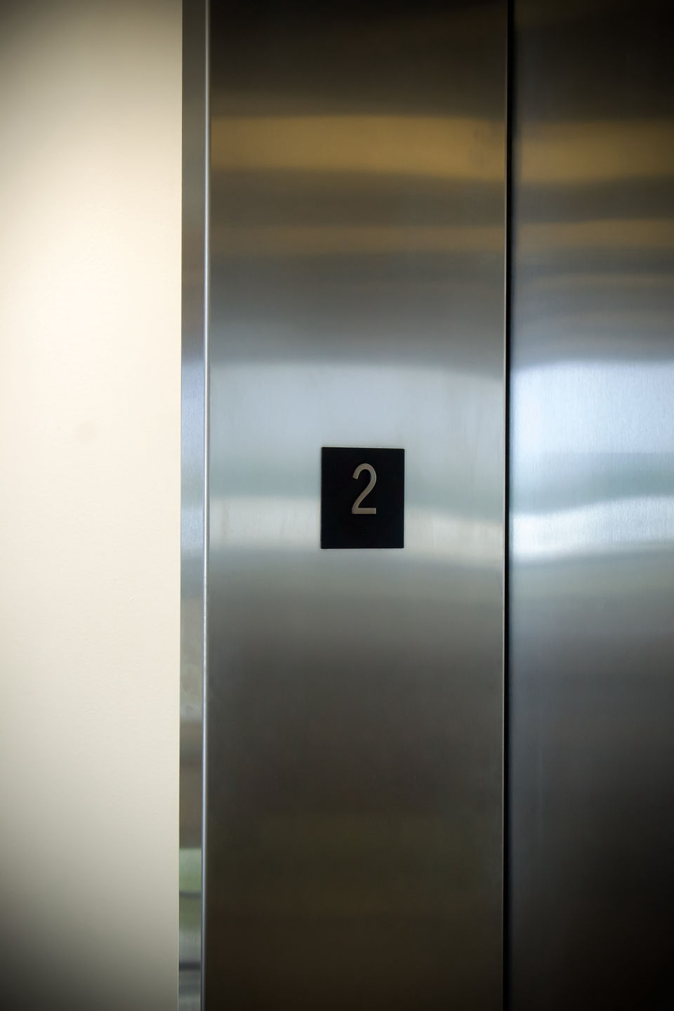 Before (top image) vs after (bottom images) 2 car modernization project - 8 stop traction passenger elevator
